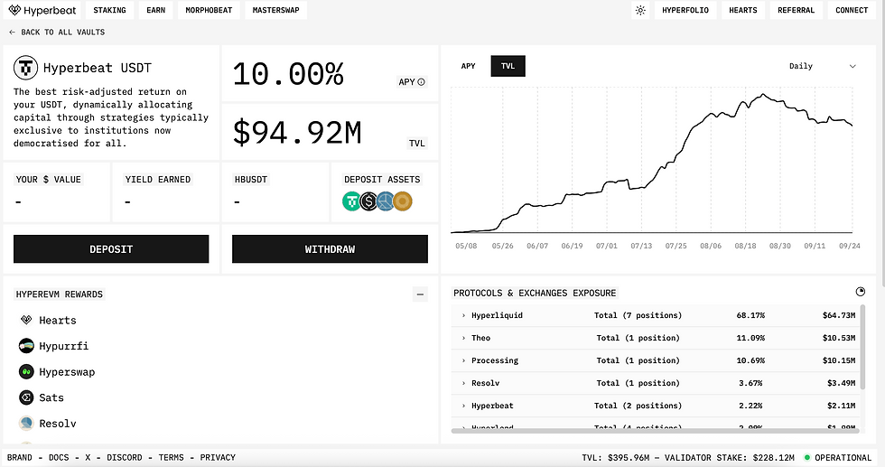 STEP 3: Deposit USDC to 0xHyperBeat 's UDST Vault (~10% yield): https://app.hyperbeat.org/vaults/usdt