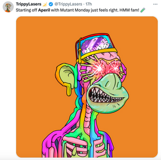 Mutant Monday was extra insane today as BAYC members celebrated the beginning of ‘Aperil’ with a GM post and some copypasta!