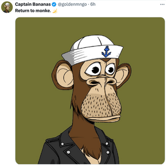 Following Goner’s tweet, Apes both old and new, from the faithful to those who have strayed from the swamp, took to the timeline to share photos of their Apes with the caption ‘Return to monke’ in the latest copypasta trend!