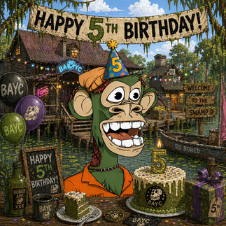 STILL BORED AND BREWING: Bored Ape Yacht Club Members Fill The Timeline With Art, Edits, And More As They Celebrate Five Years Around The Swamp!