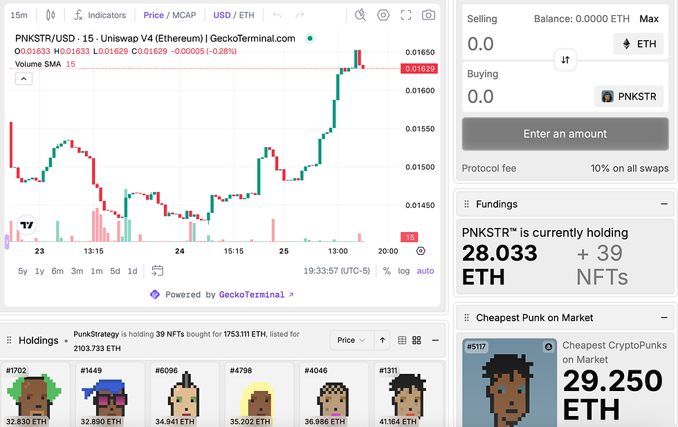 At the time of publication, PunkStrategy has a market cap of $15.27 million USD, and the protocol currently holds 39 CryptoPunks and an additional 28 ETH.