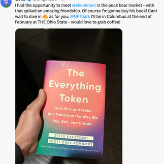 While the crypto market continues to dip, thanks to Grayscale dumping Bitcoin, Bored Ape Yacht Club members and the broader Web3 ecosystem are zooming out and heading to their local bookstores and Amazon to purchase their copies of 'NFTBark' and Scott Kominers' new book, 'The Everything Token,' and remind themselves of the transformative tech behind their Jpegs!