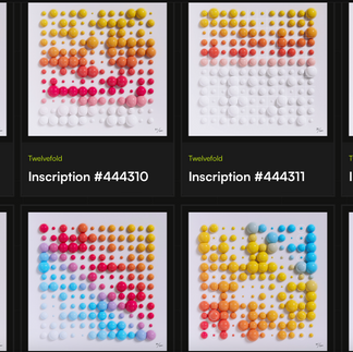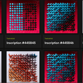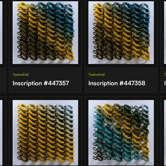 “TwelveFold is a base 12 art system localized around a 12x12 grid,” Figge tweeted on March 5th. “The collection of 300 inscriptions is made up of 25 different series of 12, each with their own motif. Each series maintains a theme spread across 12 unique pieces. Like crypto, the collection isn't so much linear but cyclical, with four different color palettes progressing throughout: winter, spring, summer, autumn. It's a nod to being optimistic whether we're in a Crypto Winter or a Defi Summer. Every TwelveFold piece will be inscribed onto a satoshi with a satpoint ending in the number 12, and the ‘postage’ associated with each inscription will be 12121.”
