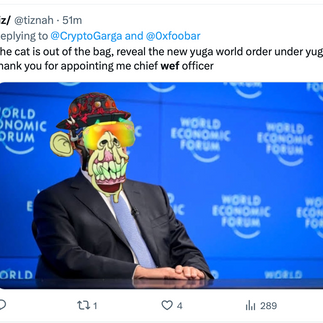 Things were anything but boring around the swamp today as screenshots from the World Economic Forum's website, showing Yuga Labs listed as one of the international non-governmental organization’s partners, filled the timeline. This led Garga to tell the community that he was unaware of this and prompted Gordon Goner’s CIA handler, Steve, to make a post on his behalf.